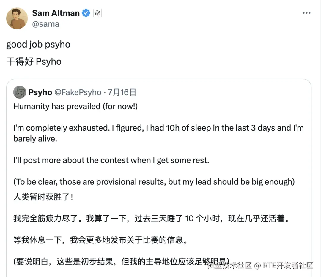 消息一出,连 OpenAI CEO Sam Altman 都亲自转发了,并配文「干得好,Psyho!」