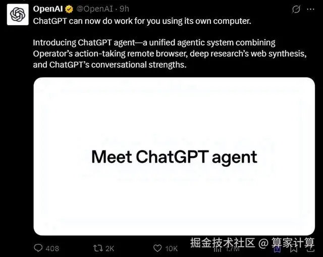 具备自主决策能力的ChatGPT智能体正式发布!无缝融合思考、操作、进化三大AI引擎。
