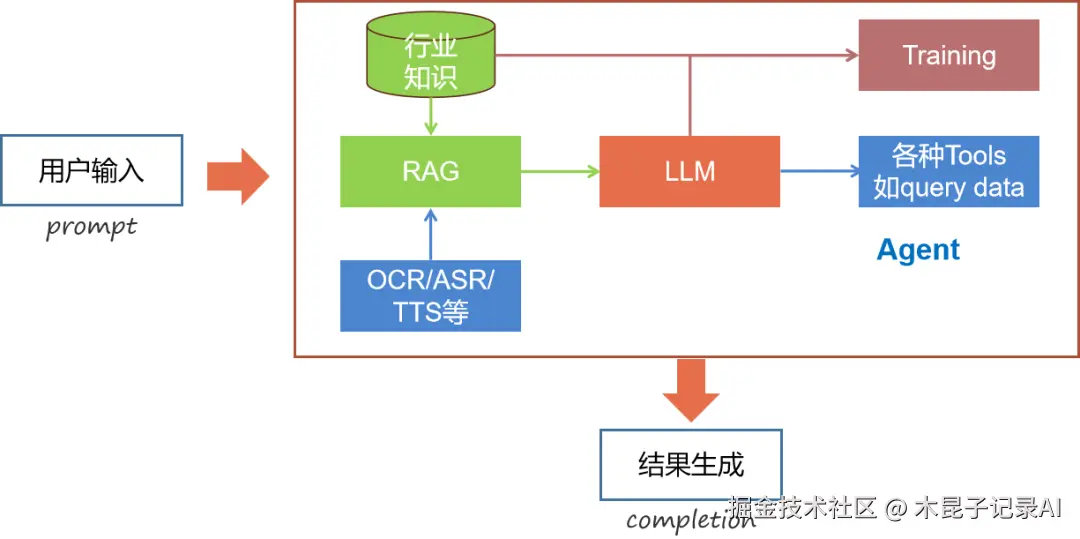 在LLM基础模式之上,接下来我们逐步拓展RAG<AI Agent<Training的使用模式和技术体系。