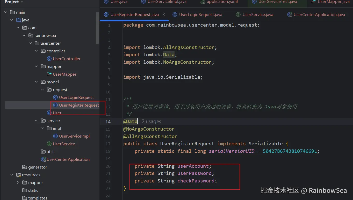 import com.rainbowsea.usercenter.model.request.UserRegisterRequest;