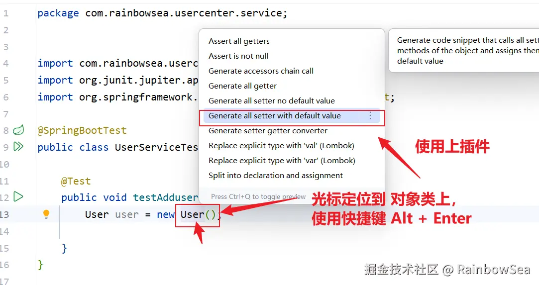 @ Test当中是org.junit.jupiter.api包下的 Test 就可以,自动帮我们启动 spring Boot 当中的项目类了。