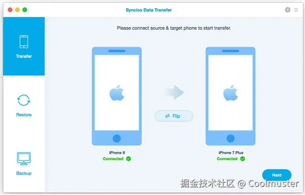 另一个广受欢迎的“迁移至iOS替代方案是同步iOS数据传输。除了设备间的传输,它还支持将 iOS/ Android数据iOS到电脑,并在稍后将其恢复到您的iOS / Android 。