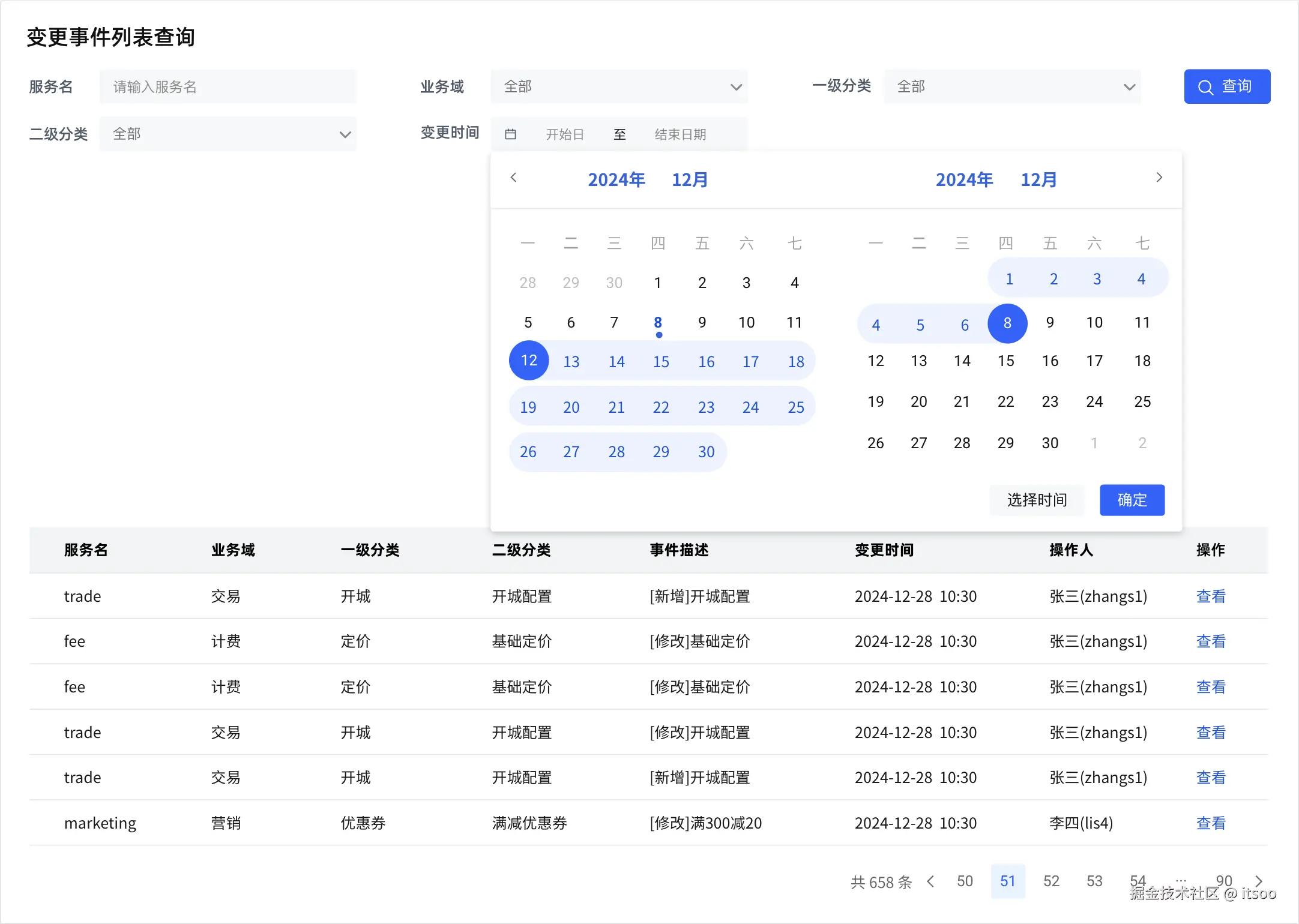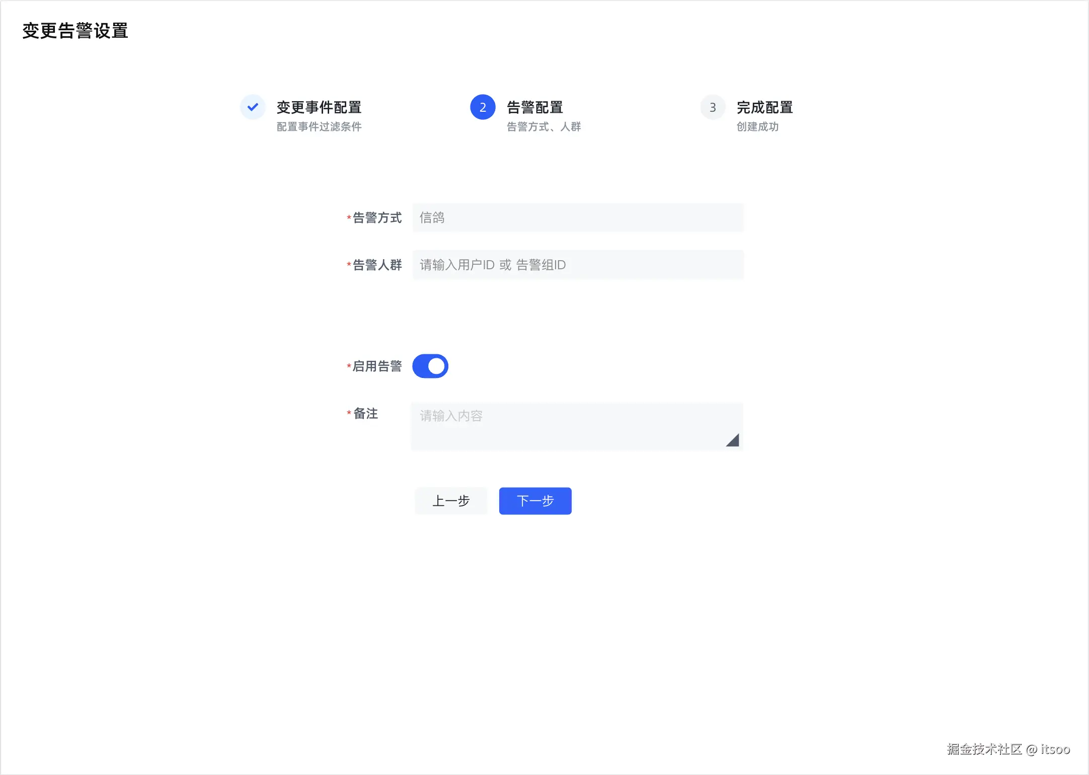 变更告警平台原型图中,并没有给出 “变更事件配置” 页面的设计,这里提供思路,读者可以自行设计,锻炼一下(那肯定不是我懒,hhhh)。
