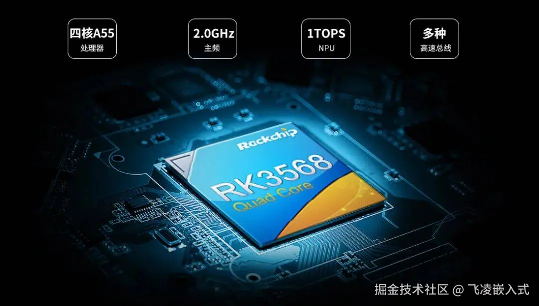 RK3568处理器采用四核64位Cortex-A55架构,主频高达2.0GHz,并集成1TOPS算力的瑞芯微自研NPU。还支持多种高清视频解码和多路显示输出,能满足从工业控制到智能安防等多样化应用需求。