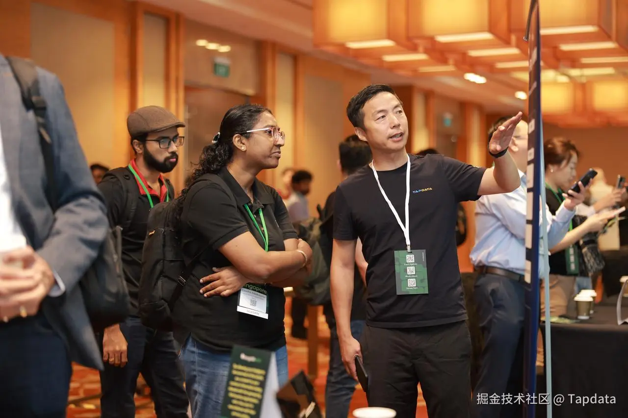 此外,在大会现场,TapData 展位也吸引了众多与会者前来交流。团队现场就 TapData 的核心能力、技术实现及实践部署等大家感兴趣的内容进行了延展讲解。在场的 MongoDB 数据库技术爱好者也对 TapData 在 MongoDB 生态中的深度集成表现出浓厚兴趣,并积极咨询实际落地方案与试用路径。
