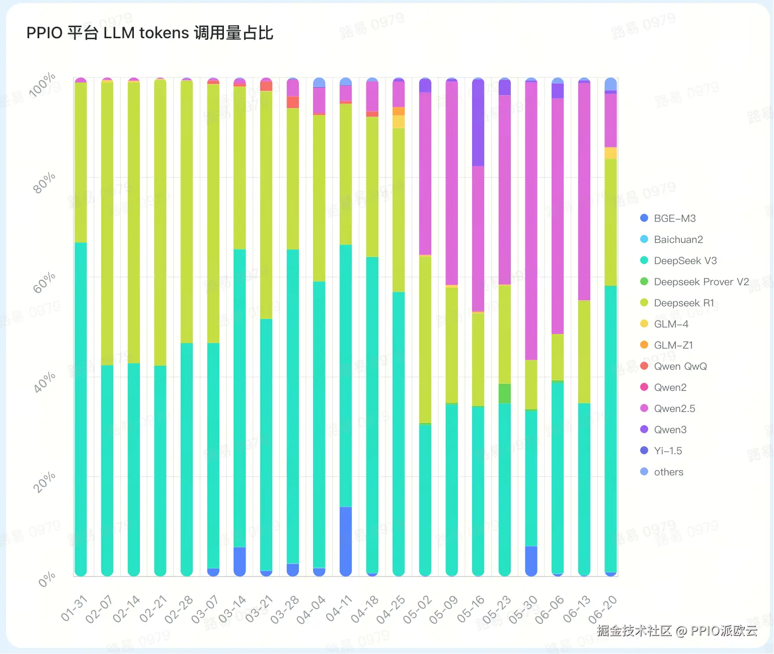 PPIO派欧云提供国内主流开源模型服务,包括 DeepSeek、阿里 Qwen、MiniMax、Kimi、智谱 GLM等,是国内开源模型服务最全面的 AI 推理云平台之一。根据 PPIO 平台的大模型 tokens 调用量,我们总结了 2025 上半年国内大模型十大趋势。