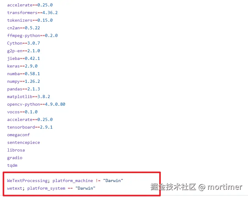 完成这些“搬运”工作后,我们便成功地绕过了在终端用户机器上进行编译的难题。同时,为了避免在后续安装其他依赖时 pip 再次尝试编译它们,必须打开位于 D:/index-tts 的 requirements.txt 文件,将与 WeTextProcessing 相关的两行删掉。