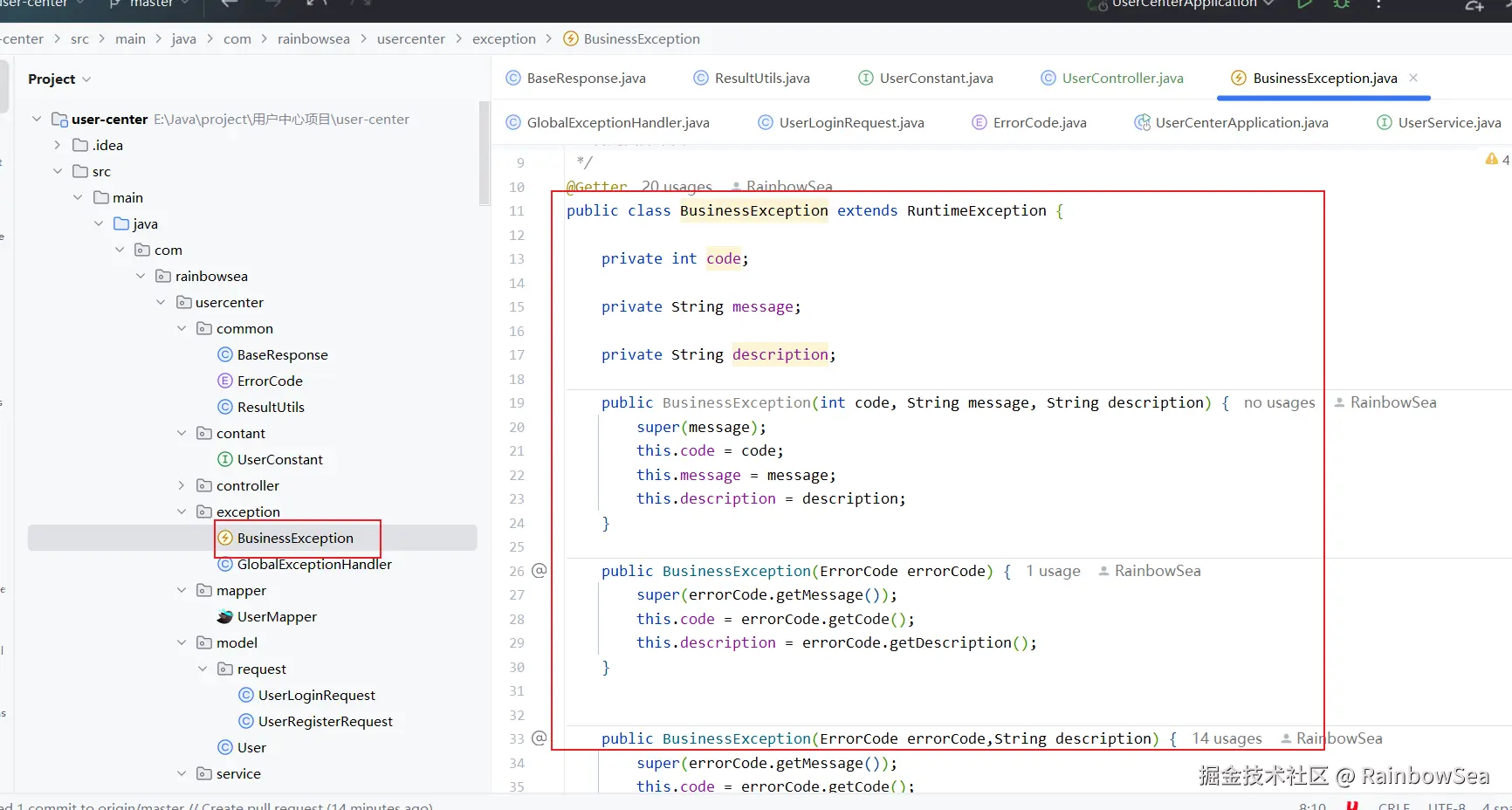 import com.rainbowsea.usercenter.exception.BusinessException;