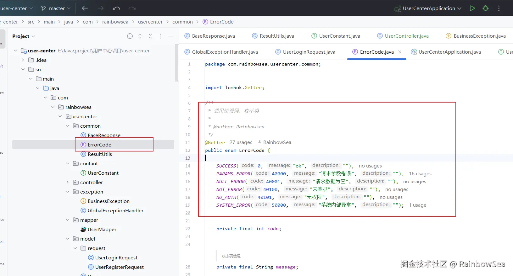 import com.rainbowsea.usercenter.common.ErrorCode;