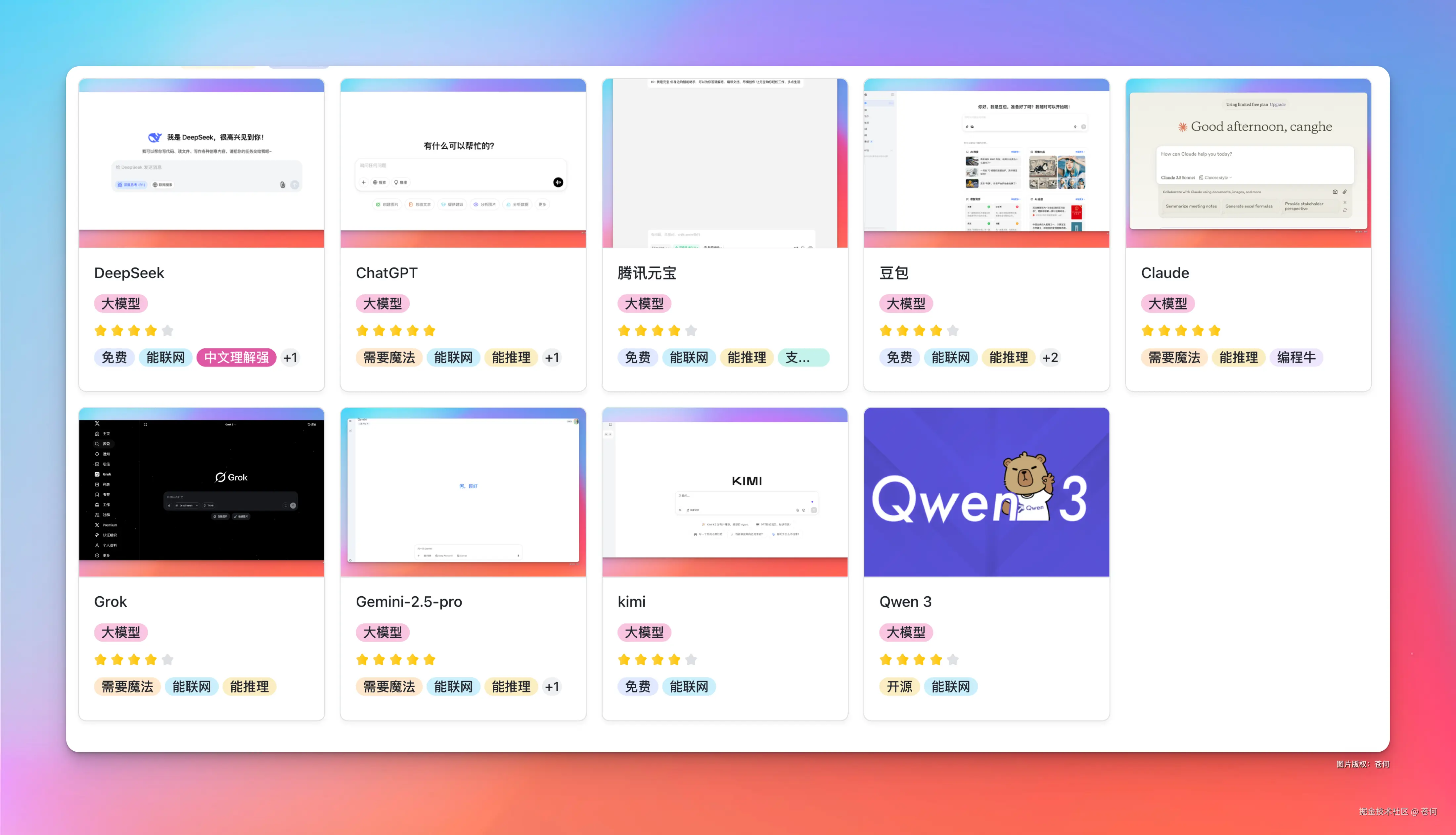 要说大模型,今年上半年还真是热闹,DeepSeek R1 火出圈,没等来 R2,却等来了 Claude 4、ChatGPT 4.5 、Gemini 2.5 pro、Grok 4、豆包 1.6 、Kimi V2 的发布。