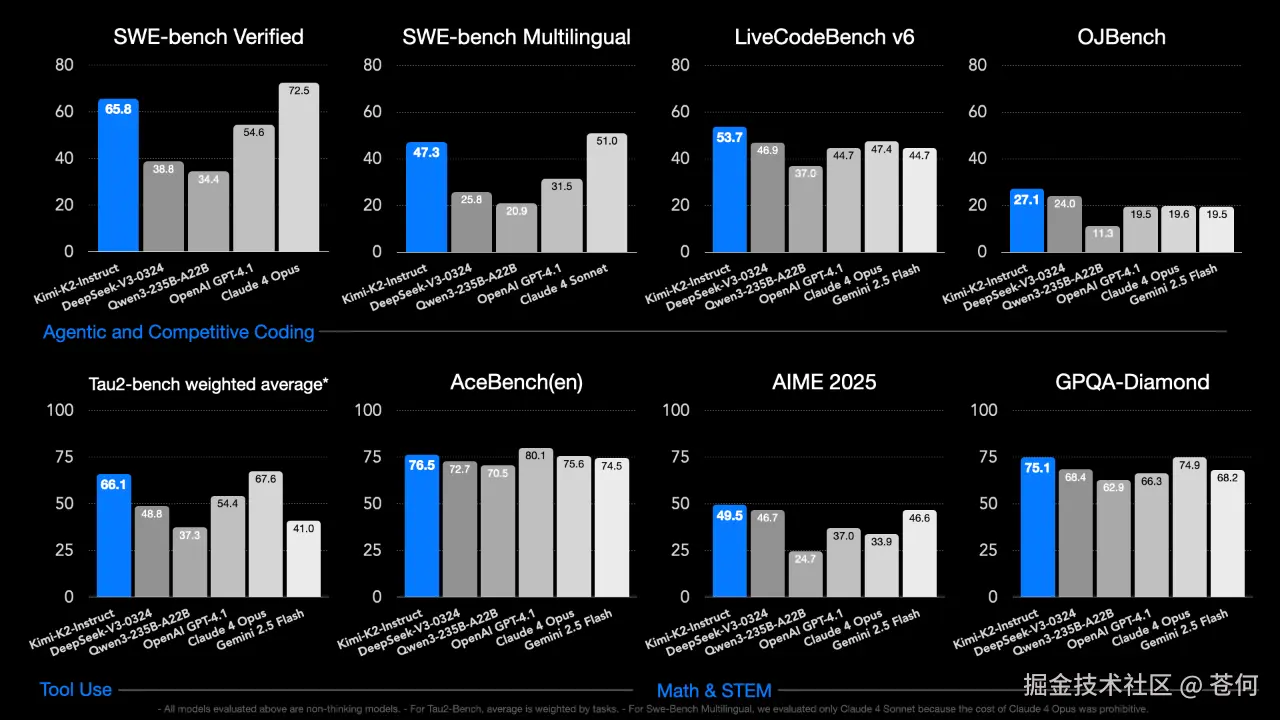 在 Agentic 工具上表现出色,在SWE Bench、Tau2等基准测试中达到开源模型SOTA,尤其在代码生成(如3D场景、交易系统)、复杂工具调用(自动拆解指令为ToolCall)和风格化写作(情感细节丰富)上表现突出。