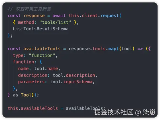 工具结果返回给 LLM:工具执行完后,将结果返回给客户端。