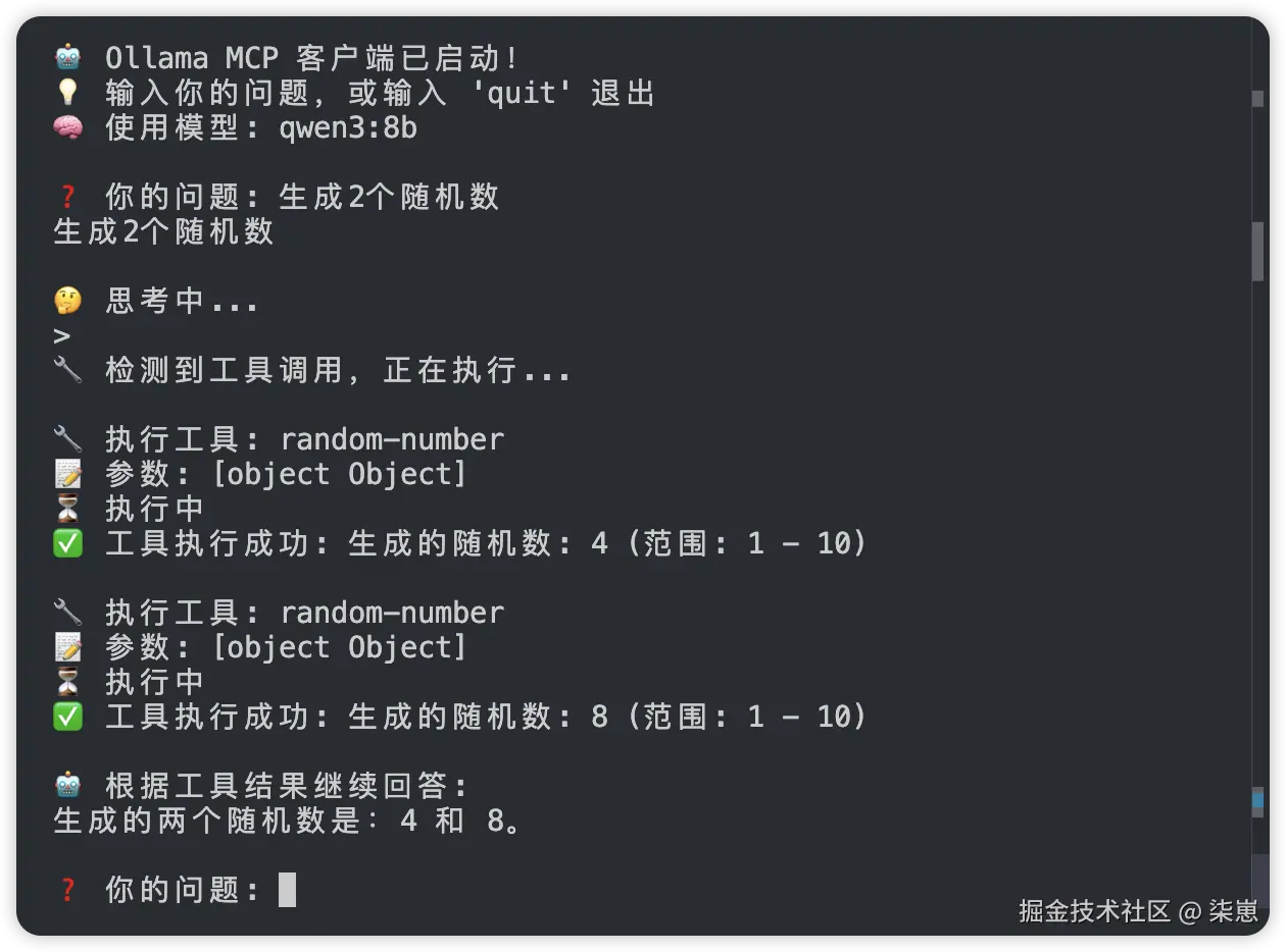 LLM 生成最终响应:LLM 接收到工具执行结果后,将结果和之前的对话上下文,生成最终响应。