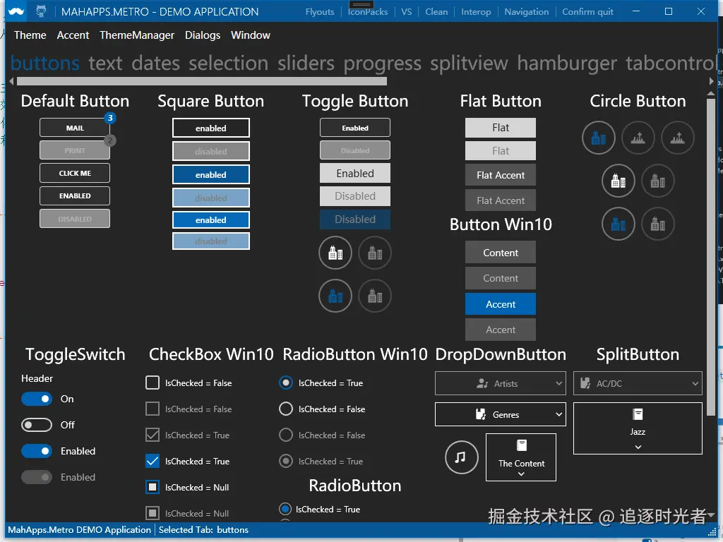 MahApps.Metro 是一个开源、免费、Metro风格的 WPF UI 控件库,提供了现代化、平滑和美观的控件和样式,帮助开发人员轻松创建具有现代感的 Windows 桌面应用程序。