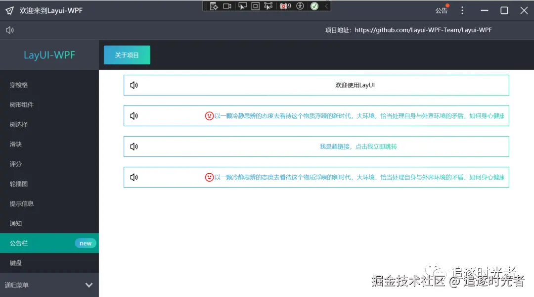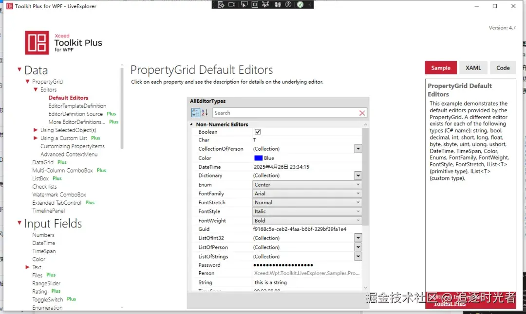 Extended.Wpf.Toolkit是一款开源、经典、易于使用的 WPF 控件、组件和实用工具集合,专为打造新一代 Windows 应用程序而设计。它能帮助开发者构建经典且外观专业的 WPF 应用程序,对于想要自己编写 WPF UI 界面的同学可以参考借鉴学习。