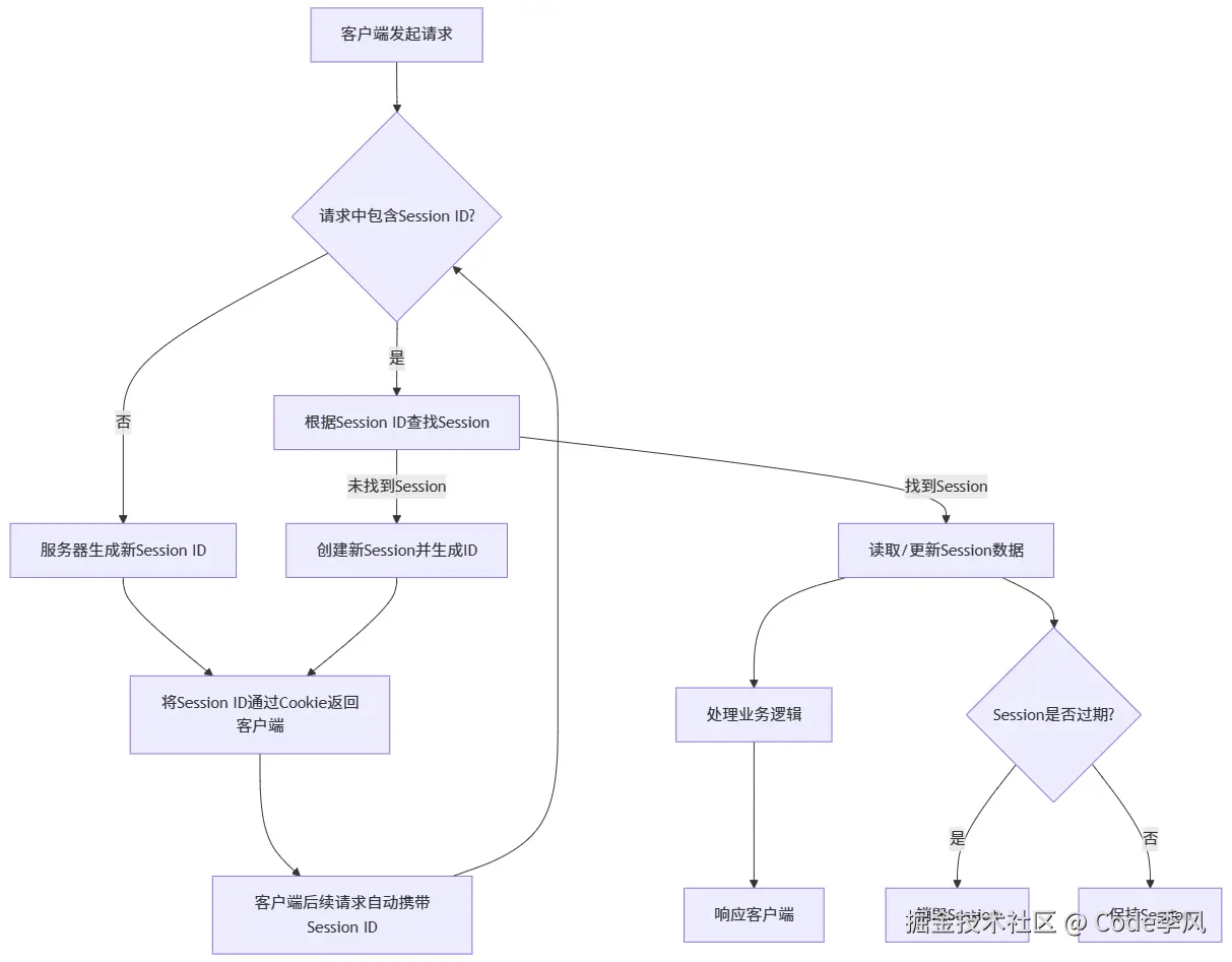 - 如果未找到匹配的 Session,服务器可能创建新的 Session(或返回错误)。
