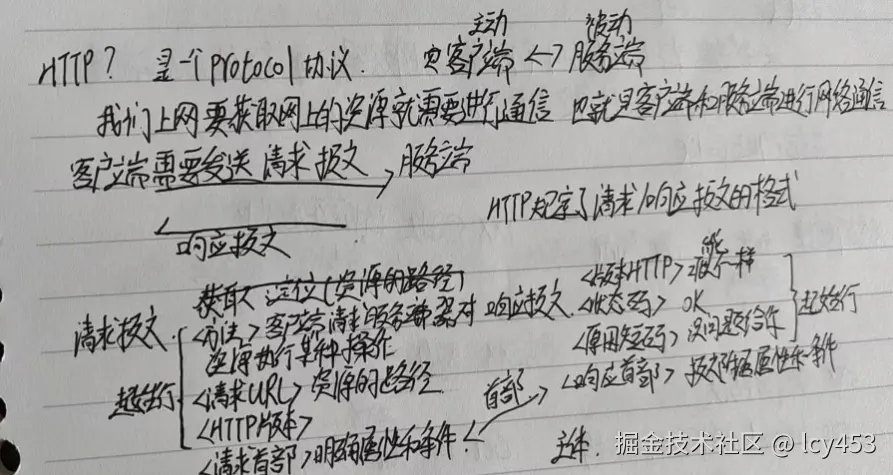 http是什么,是一个protocol,最后一个p,也就是协议。我们知道客户端和服务端是主动被动的关系,我们上网实际上是用客户端去主动发送请求给服务端,服务端被动的响应,也就是说,客户端需要发送请求报文,而服务端响应报文,这其中http规定了请求和响应报文的格式。