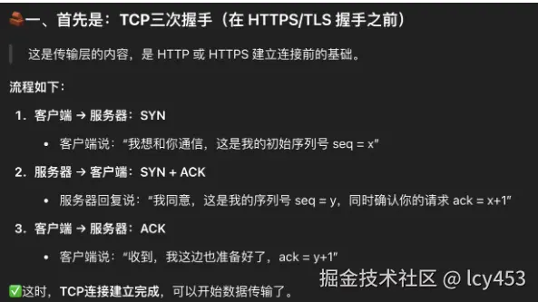 TCP握手之后建立连接开始TLS握手,这是应用层的协议建立安全通信信道