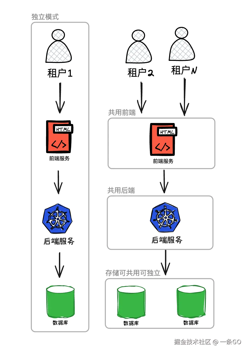 - 通常大客户金主会要求独立模式,他们是大金主,大概率会有定制开发