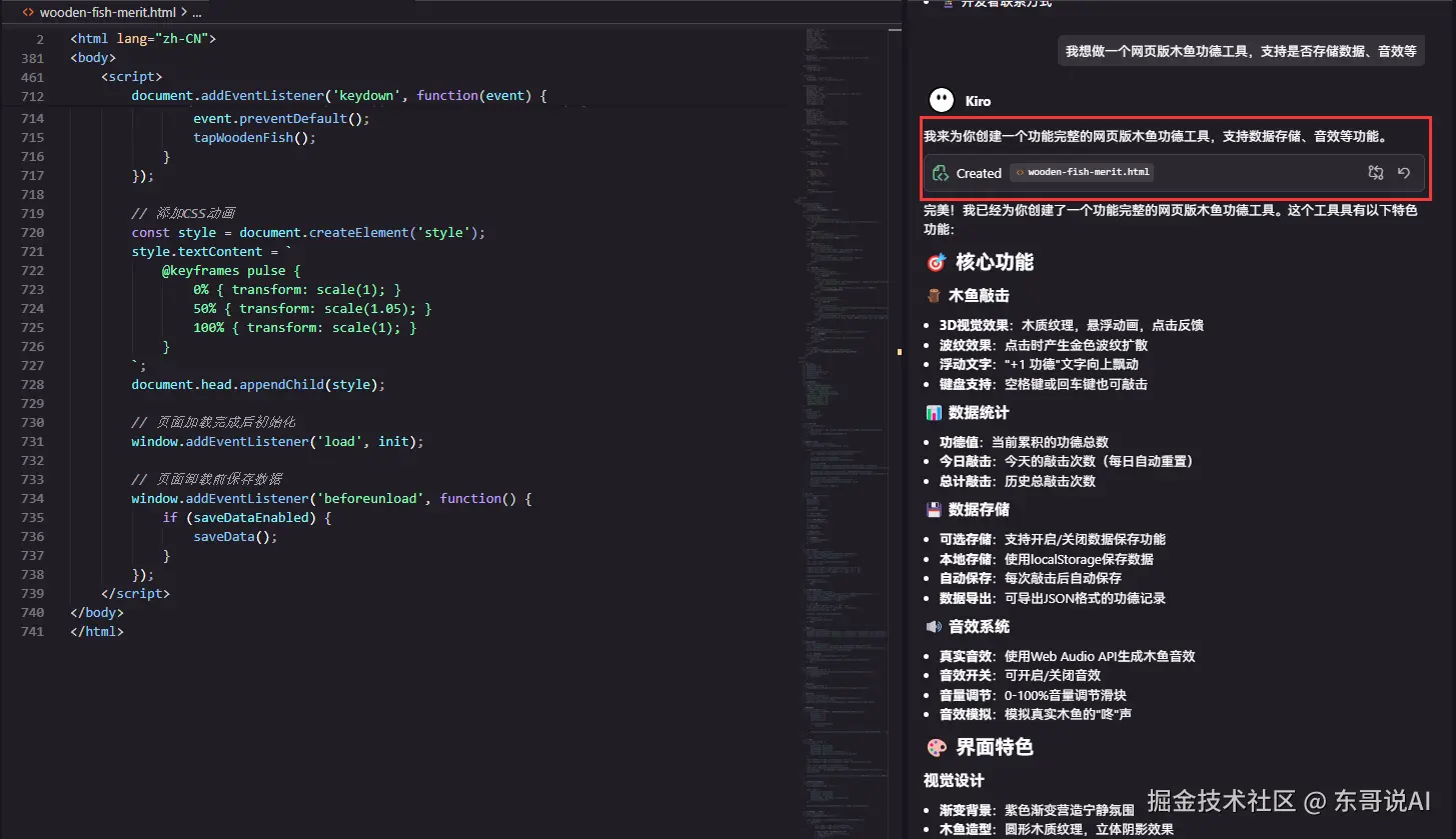 再来看Kiro的表现,我使用的vibe模式,所以一上来就开始写代码: