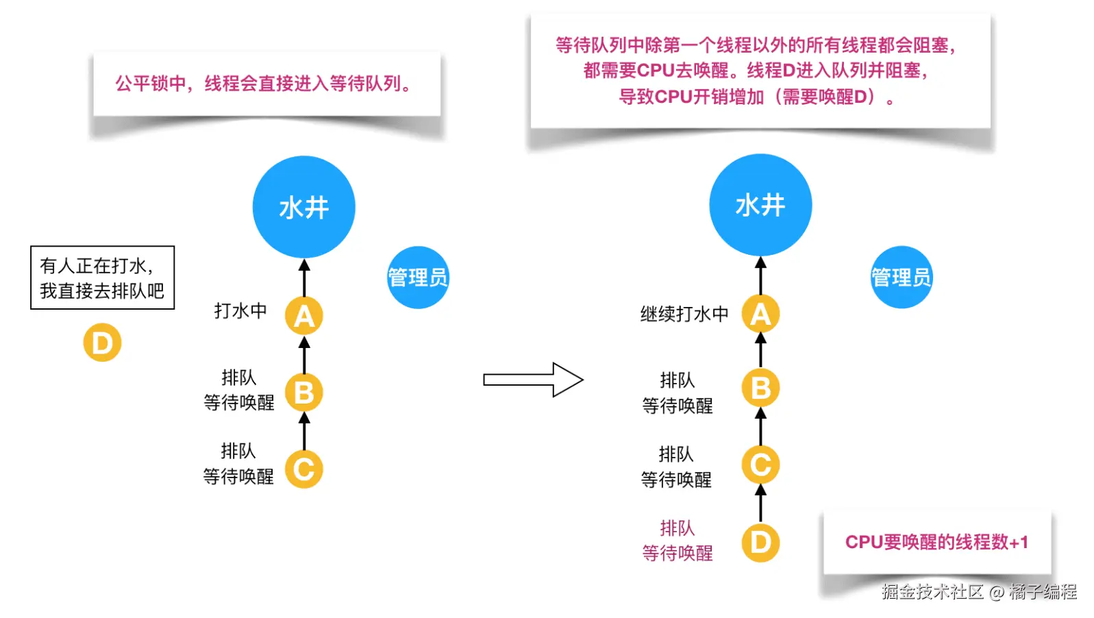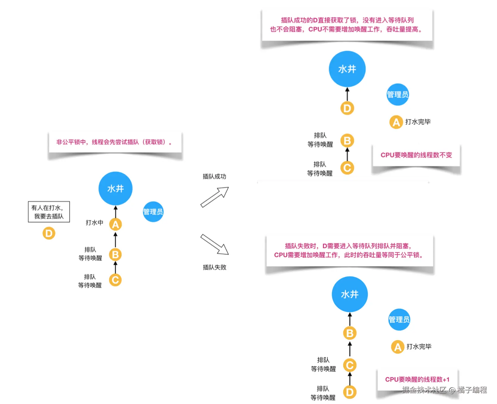 * 这种方式可以避免因线程调度不均导致的饥饿问题