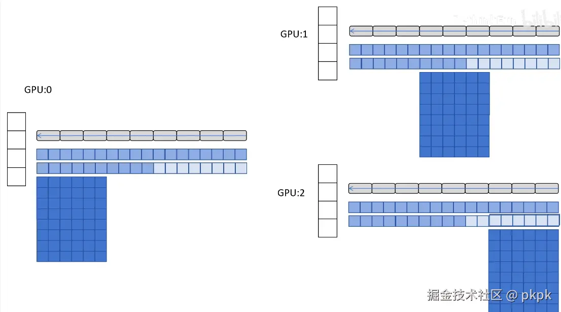 我们看到每张卡要保存:模型参数、梯度以及优化器状态。而优化器状态例如梯度、一阶动量等占用了大部分的空间,这也就是ZeRO优化的目标,而从下往上即:优化器状态,梯度,模型参数则构成了我们的3个stage。ZeRO-DP 通过以下方式解决这种冗余问题: