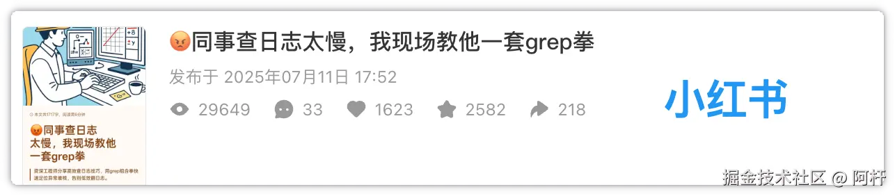 引言:一篇讲基础grep命令的‘炒冷饭’文章,竟横扫掘金/知乎/小红书三大平台,甚至登顶掘金热榜TOP1——它做对了什么?又预示着什么?