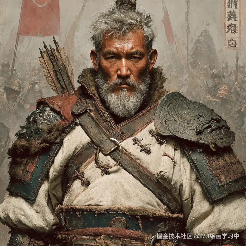 这是一组专为 Midjourney生成东汉末年名将黄忠全身像而设计的中文提示词,力求突出其老当益壮、神射手和威武老将的特点: