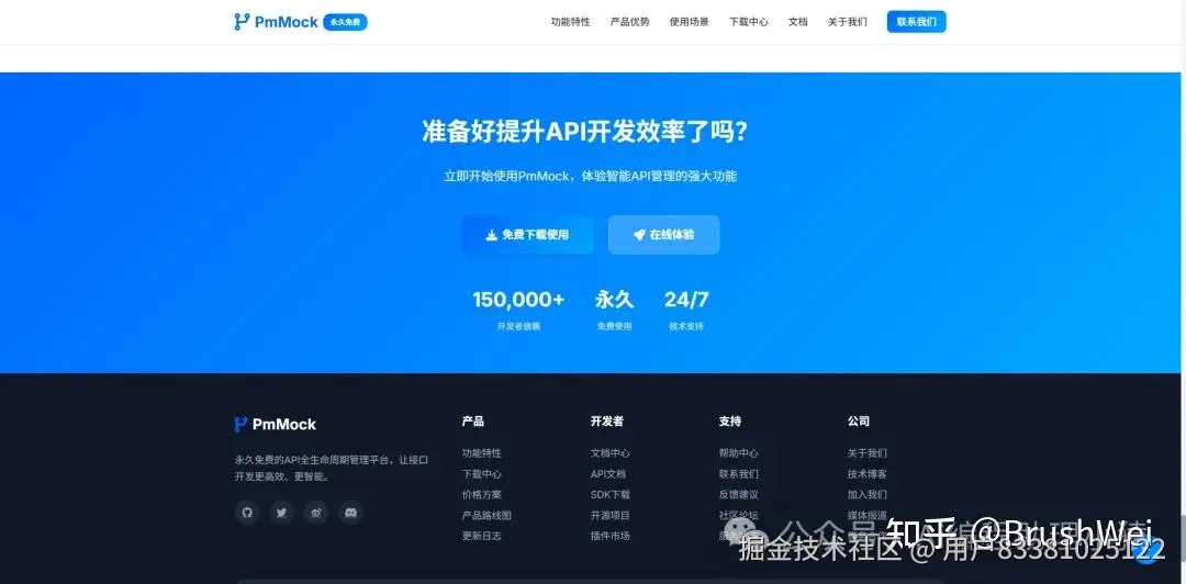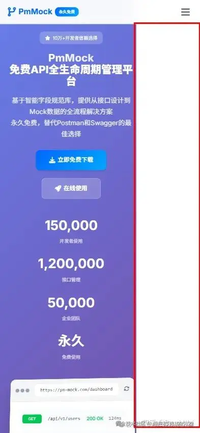 事情是这样的:最近为了准备推广我的产品PmMock,目前我的产品虽然已经上线了国内主流的应用市场,但是我一直都不敢去推广我的产品,原因是之前我在做官网的时候,虽然整体框架是完整的,但是图片我还没有截图替换,同时也没有做好移动端的适配,最近有点时间,再加上kimi k2的稳定性,让我有个想法想借助AI对我的官网进行重构,目前是我的官网截图: