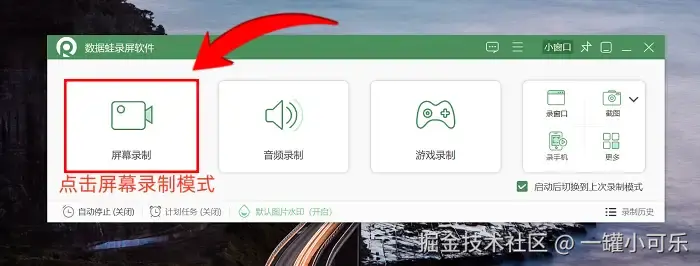 步骤1:先在你的电脑里找到并打开数据 蛙录屏软件。一打开,主界面就像个小工具箱,摆着好几种录制模式。要是没特别需求,就选 “屏幕录制” 模式,这是比较常用的主力军。