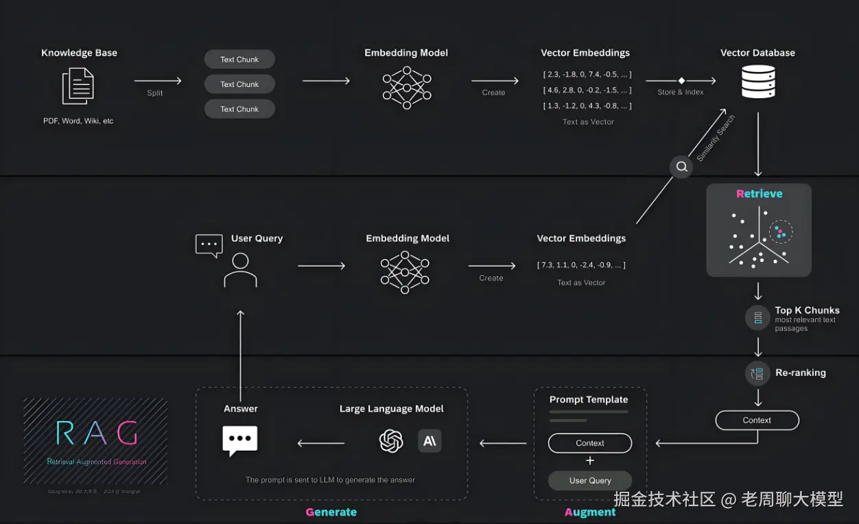 - 增强(Augmentation) :将检索到的上下文与用户查询结合,形成更丰富的输入。