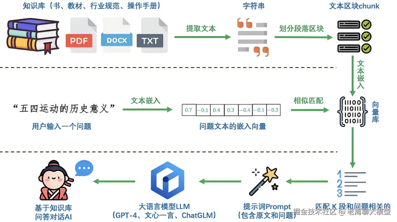 RAG技术通过“检索-增强-生成”三步框架运作: