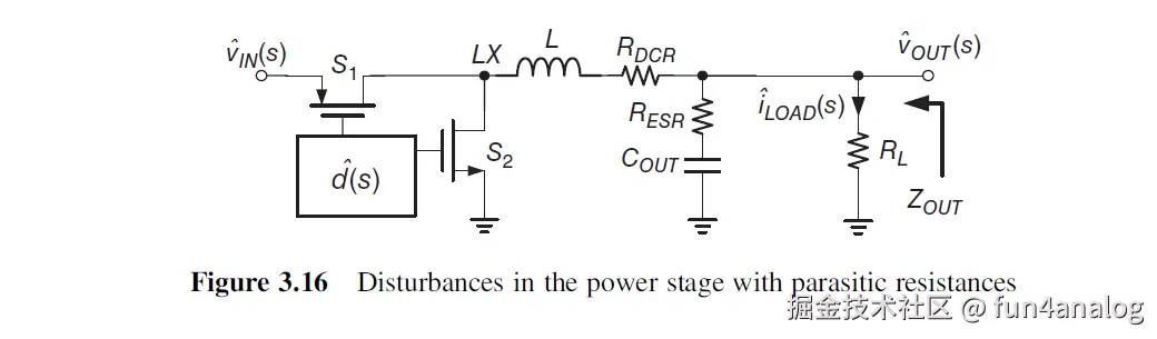 可得duty-to-output transfer function Gvd(s) 增加了一个左零点, 位置为1/(Cout ×Resr)