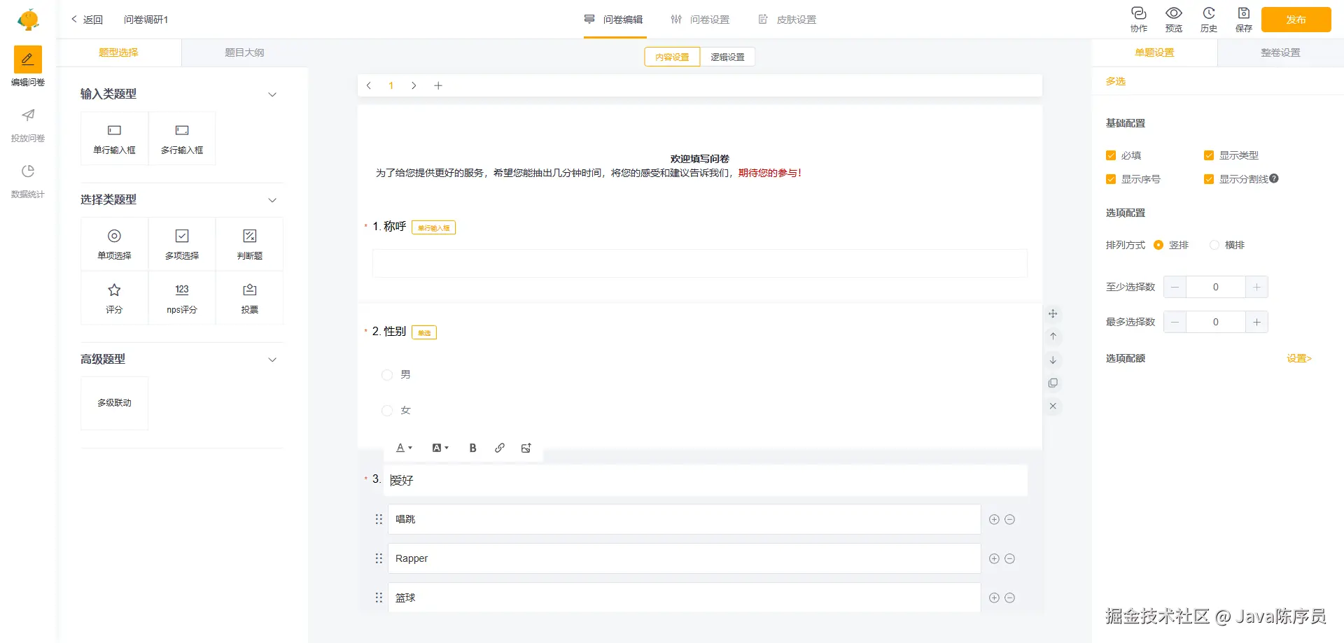 - 问卷编辑