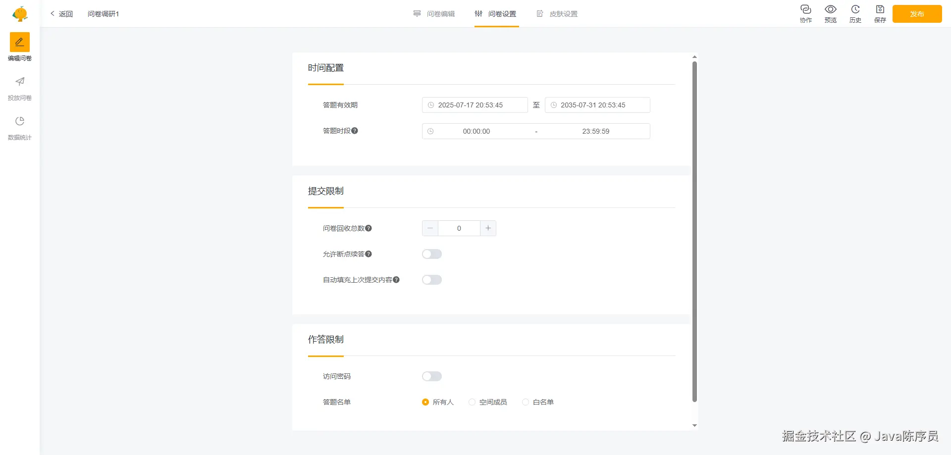 - 问卷设置