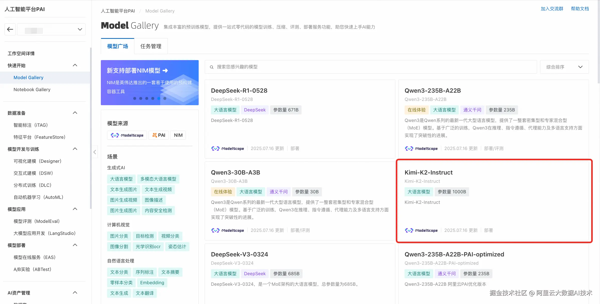 PAI-Model Gallery 模型广场找到 Kimi K2 模型,或通过链接直达该模型:pai.console.aliyun.com/?regionId=c…