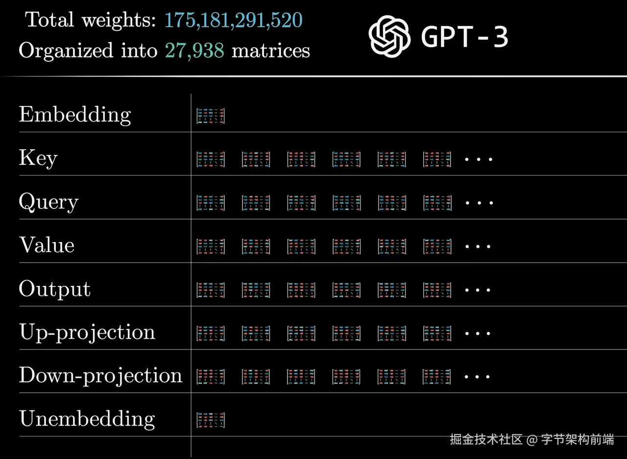 GPT3 的 embedding 矩阵有 50257 个 Tokens 输入。