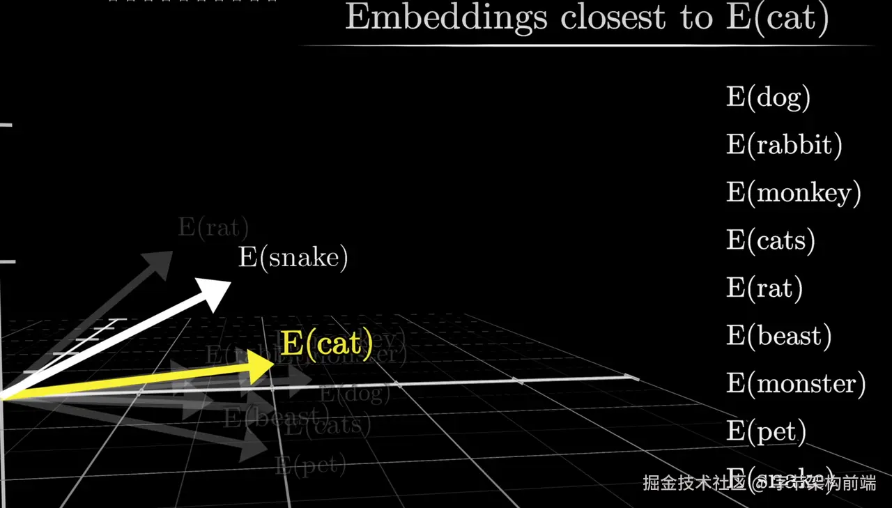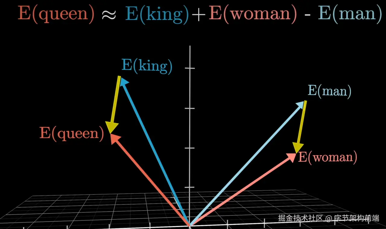 我们上一步会使用分词器把人类的单词文字划分成不同的 token,embedding 矩阵会处理不同的 token 表达为更高维度的向量。 使用向量可以在不同的维度表达不同的语义。