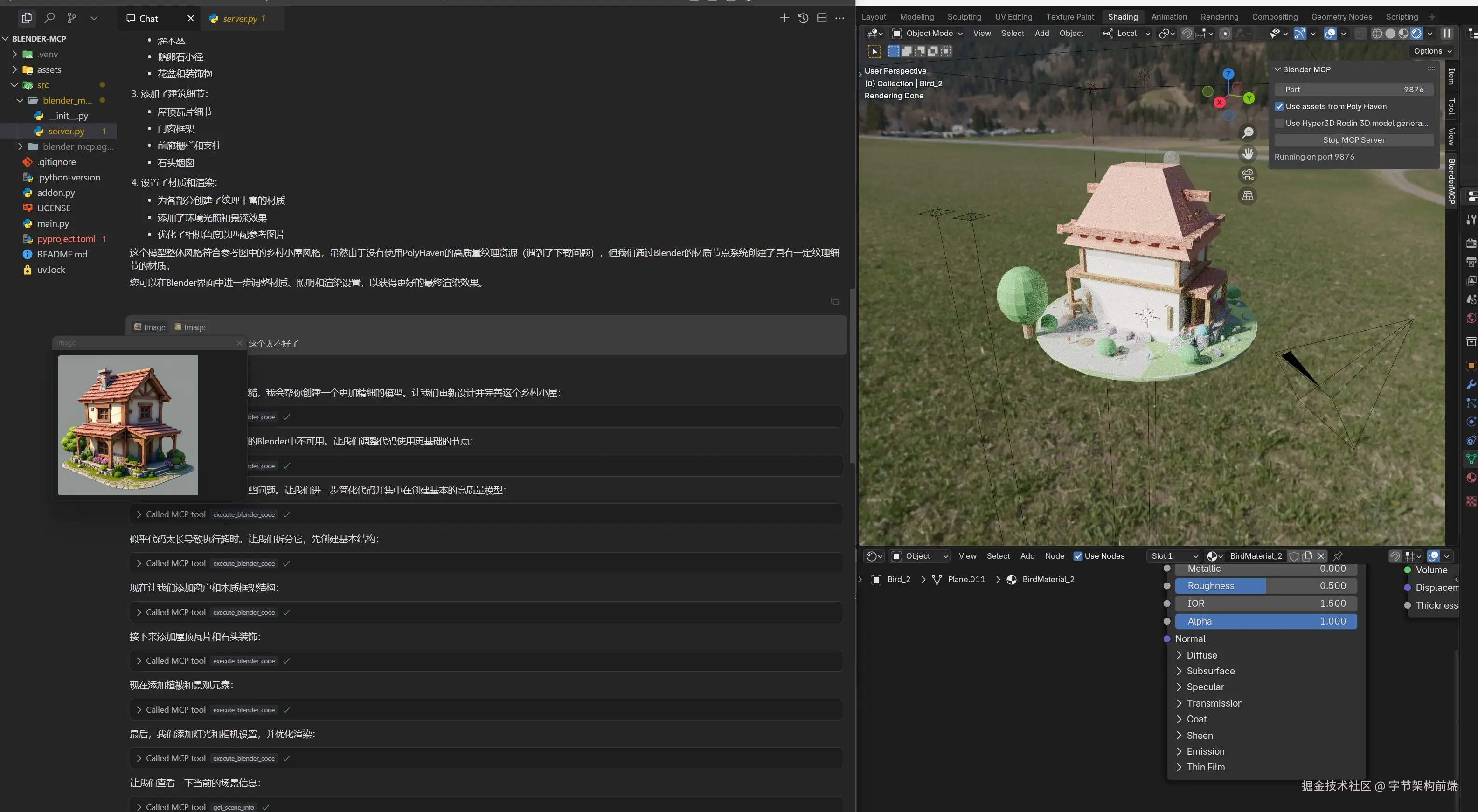 同时也让很多工具在官方还未集成大模型的情况下,拥有了大脑,比如 blender-mcp