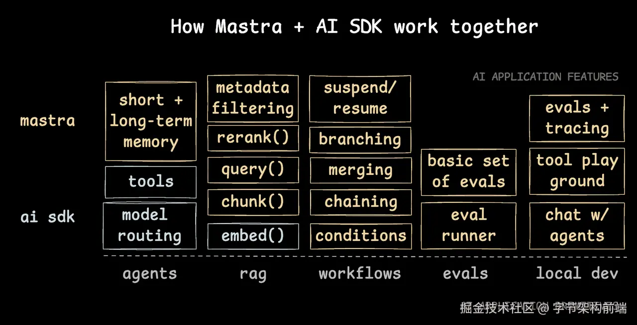 框架帮你封装了 memory、rag、workflow graph、eval、devtools 等内容,这些我们本文没有提到,都是构建 Agent 的强有力的模式或工具,到时候需要的时候再自行使用就行。