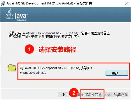 本示例以F:\env\Java\jdk-21\ 作为安装路径