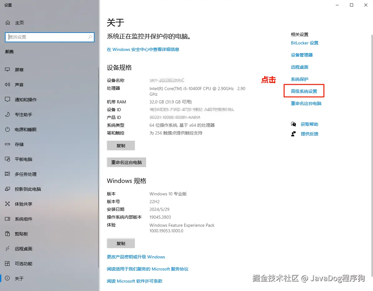 2.点击『高级系统设置』
