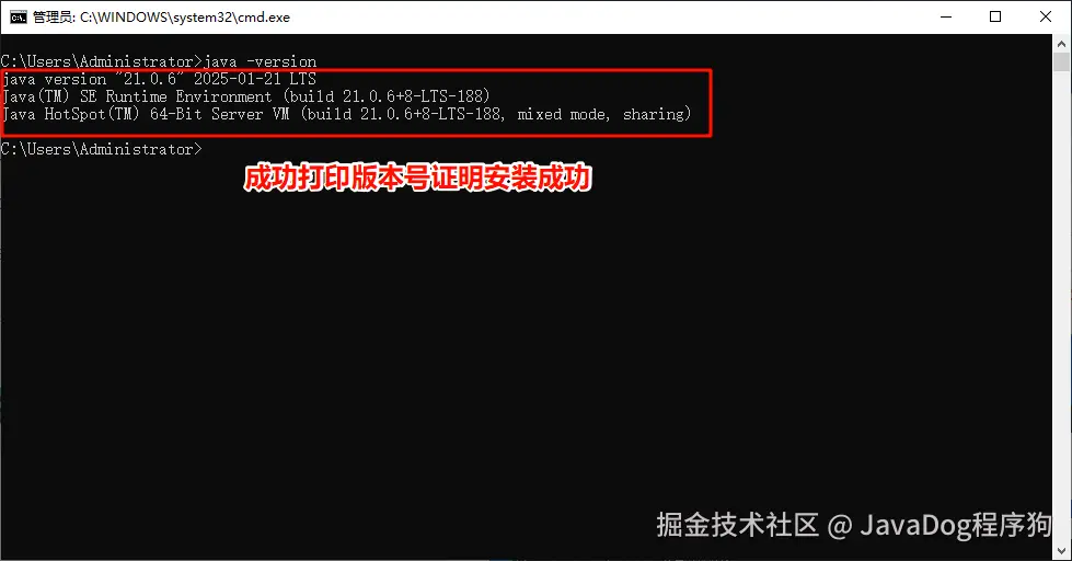 四.JDK21安装成功验证