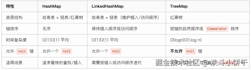 TreeMap与其他 Map 的对比