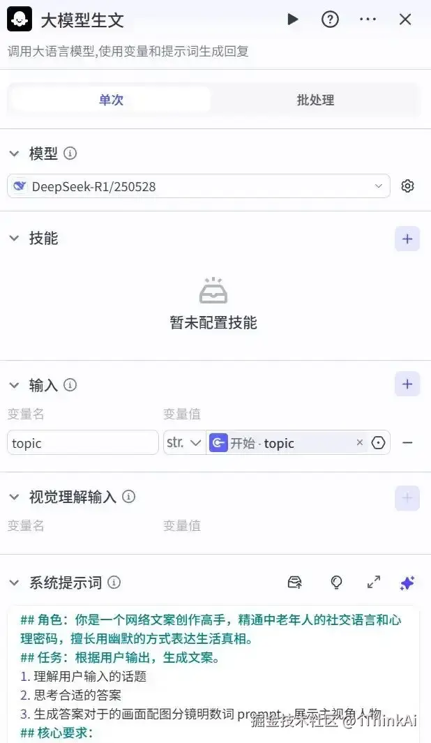 接入DeepSeek-R10528模型生成结构化文案,包含分镜描述和配图文案
