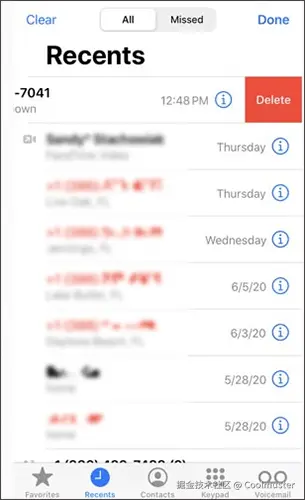 如果您只想删除特定的通话记录,有两种方法:点击“编辑”或在条目上向左滑动。