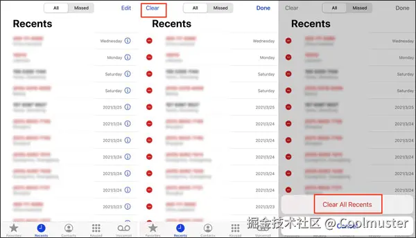 方法2.如何清除iPhone上的所有最近通话