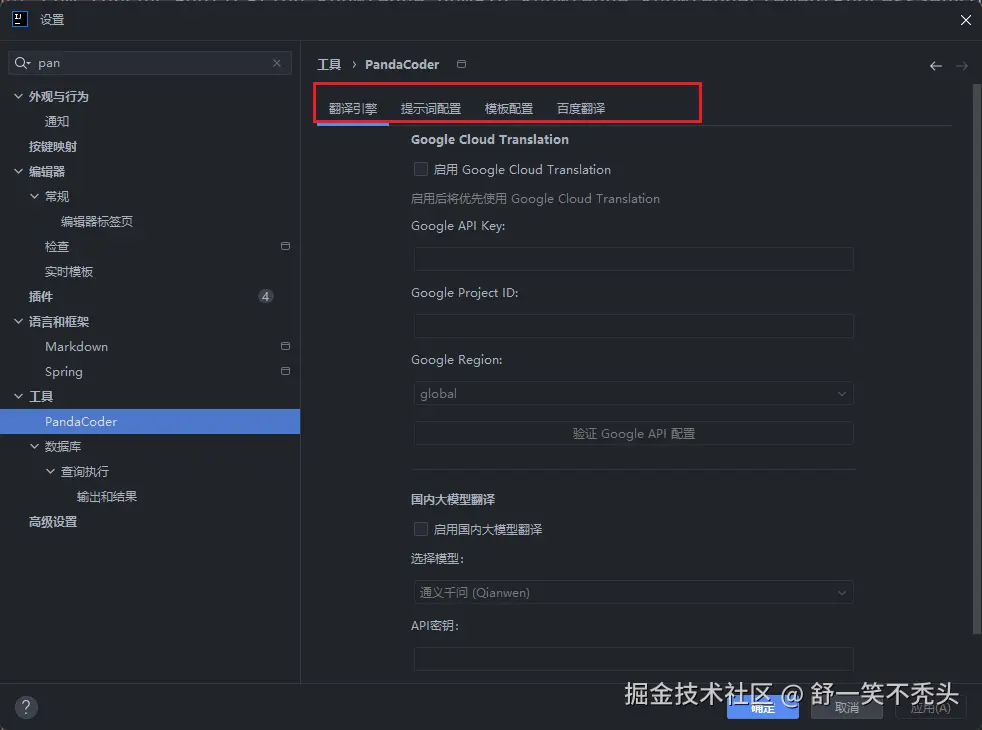 谷歌大模型、通义千问、文心一言、智谱AI,需要启用国内大模型翻译,并选择需要配置的模型,建议使用通义千问