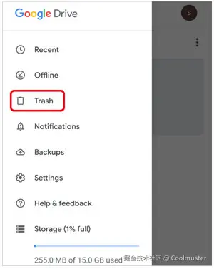 在 Android 手机上从 Google 云端硬盘恢复最近删除的图片非常简单。 Google Drive 上还有一个“垃圾箱”文件夹,存储 30 天内删除的文件,包括删除的照片。但如果您尚未将照片上传到 Google 云端硬盘,则无法使用此方法检索它们。