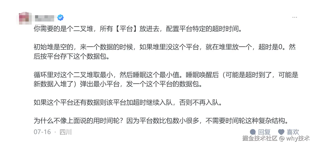 其实当这个读者提到“一个平台一条时间轮”这句话的时候,我的思路一下就打开了。